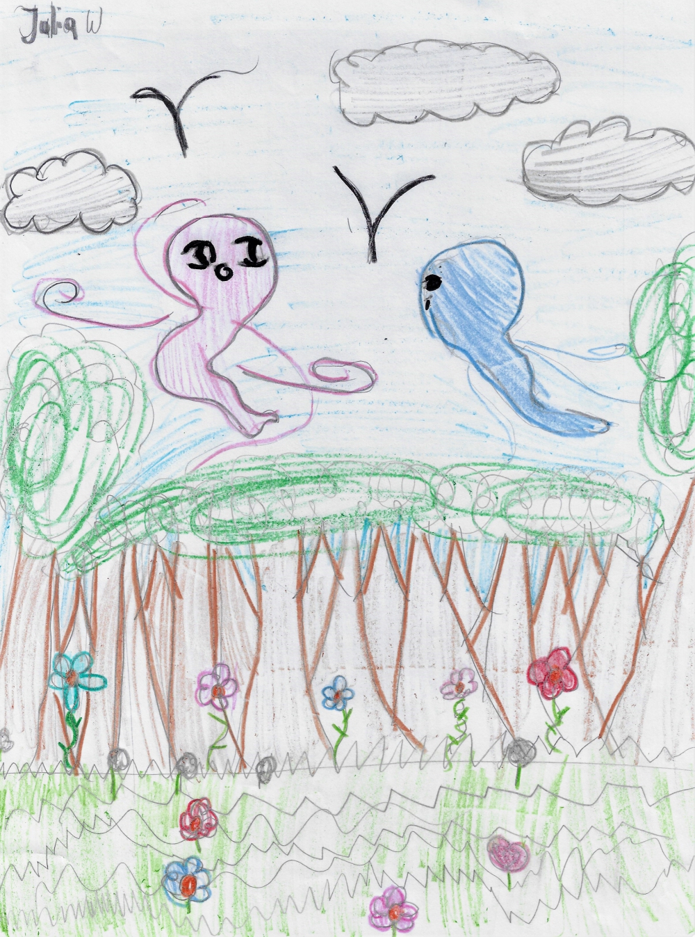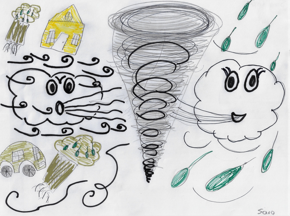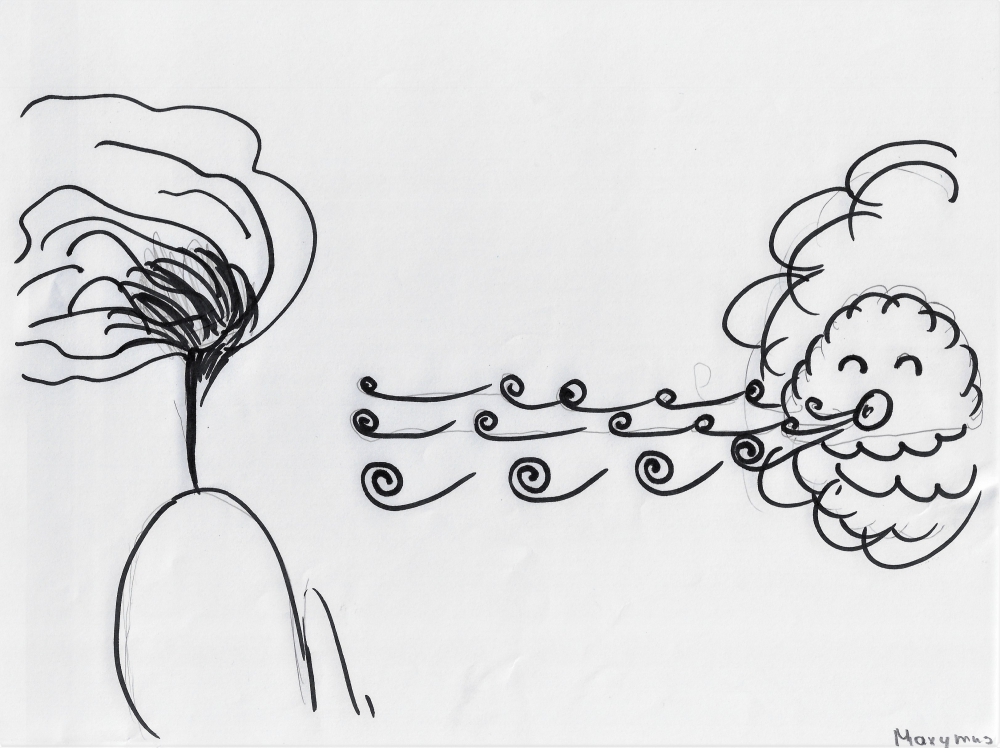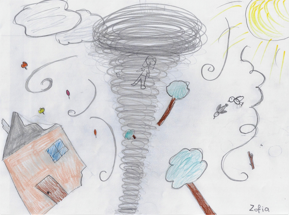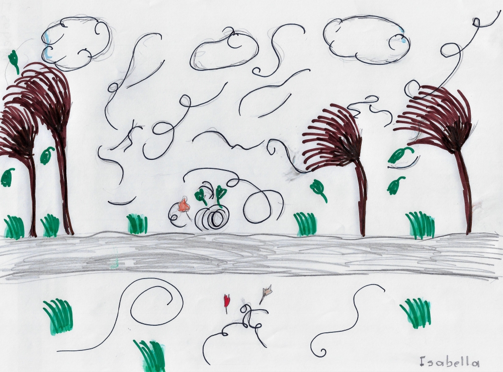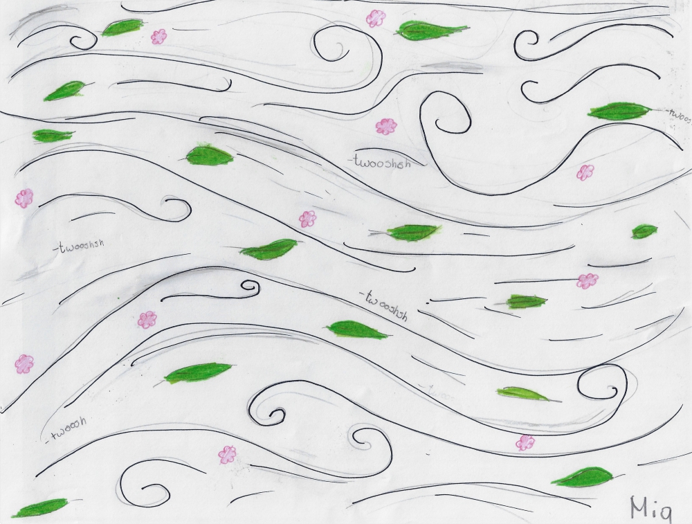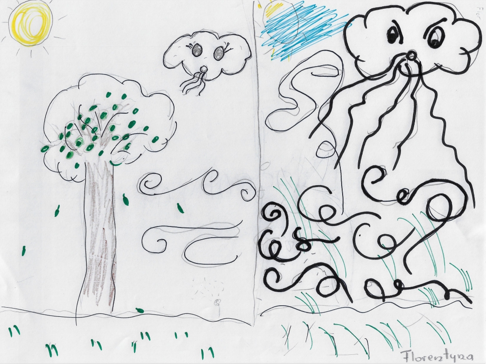 W klasie 5 omawiano wiersz, Juliana Tuwima, "Dwa wiatry". Uczniowie podsumowali zajęcia w sposób plastyczny.